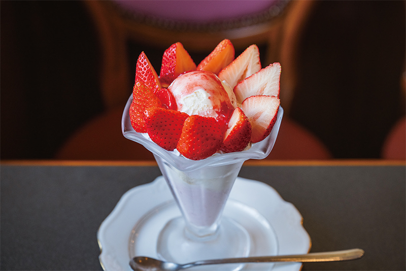 なかでもファンが多いのは季節のフルーツをふんだんに使用したパフェとワッフル。仕入れる農家にもこだわり、春にはイチゴ、夏にはメロンが期間限定で提供される。サイフォンで淹れる自慢のコーヒーとも相性抜群だ。