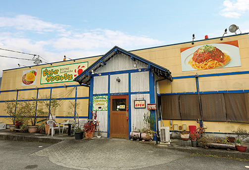 愛媛の老舗洋食店で修業を積んだオーナーの奥田さんが、その味を南予の人に届けたいと開いて20数年。ケチャップで炒めたスパゲティに、タマネギの甘み広がる自家製ミートソースをたっぷり。麺だけで約350gのボリュームなのに、ぺろっと食べられる美味しさだ。毎朝仕込むもも肉の柔らかチキンカツレツがドンとのったわんぱくなプレートをぜひ堪能して。